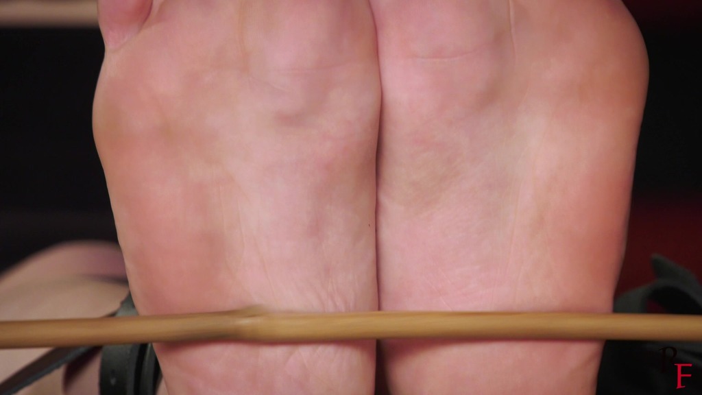 Elizabeth is an obedient girl and she loves submission and BDSM games. In this clip, she s tied to a bench with leather belts. Her hands are tied also and raised up. Her bare feet are ready to bastinado . Her big toes are tightly tied together.