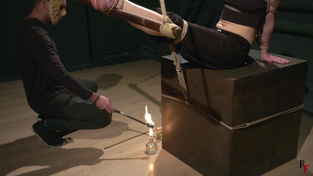 In this video, I hit her feet with a paddle and a bamboo cane and roast them with a fire torch.