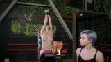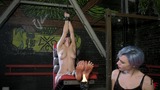This is a long clip in which Astrid Fairy Fox s feet with fire. At the beginning of the clip, Fairy Fox is fixed on a bench with leather straps. Her hands are fixed above her head. Big toes are tied. She is topless.