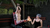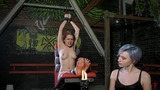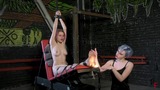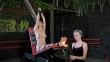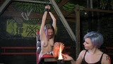Astrid comes up to her and lubricates the feet of her poor victim with an oil brush. Next, she lights a candle and begins to move the flame over the tender and oily soles of Fairy Fox. The heat from the candle makes the babe moan and twitch. It amuses and excites Astrid. After playing a little with a candle, she puts a jar with lots of candles and oil inside to the feet of Fairy Fox and sets it on fire. The heat from the candles begins to make Fairy Fox suffer but she has nothing to do but to endure while Astrid plays with her feet. During the clip, Astrid several times adds oil to the feet of her victim, with a sweet malicious smile on her face. She loves to see her victim cries...