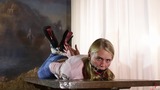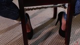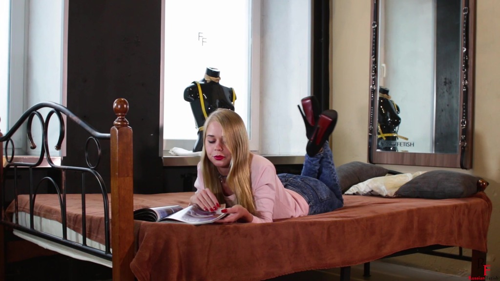Darina is lying on a table. She s hogtied. First in heels, then barefoot.