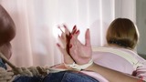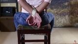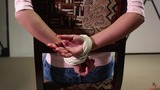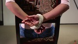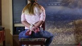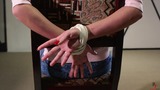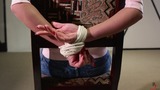 She fetches ropes and a gag from under the sofa and pulls a wooden chair into the middle of the room.