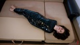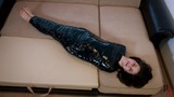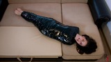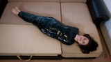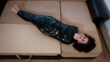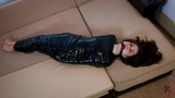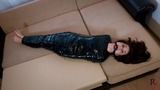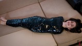 After that, she lies on he stomach and looks on camera and moves with no chance to escape. We can see her face and feet now at the same time.