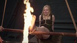 It all starts with paddle blows on her bare feet. Olesya reacts very nicely and frowns. Then her feet get oiled and burned with a fire torch. After that, a bamboo cane appears in Masked man s hands and blows on oily feet with traces of soot begin. Then Masked man lights up the torch again and, in addition to the usual roasting, hits her soles with it. In the end, a close-up view of her soles shows footprints from today s session. It was an interesting experience for Olesya and she liked it. Enjoy!