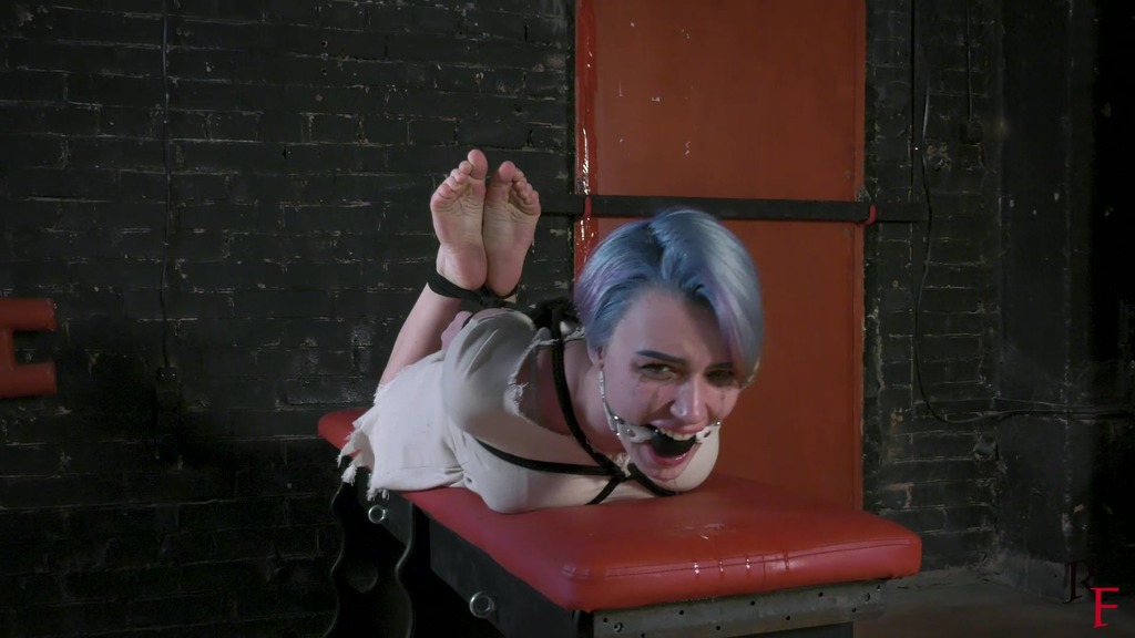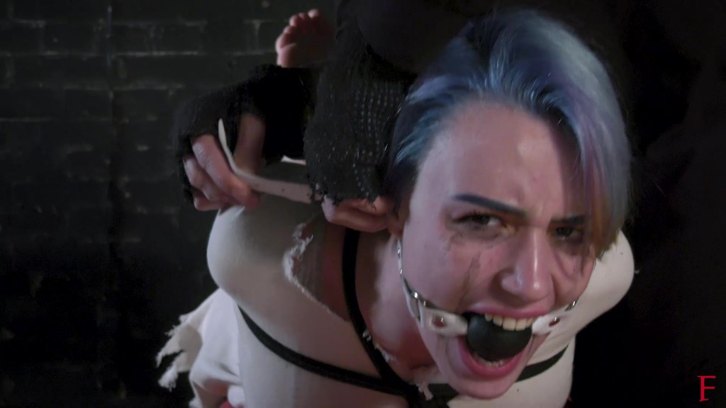 Her feet were by fire and she had confessed in witchcraft. So now she’s hogtied for further . Her face is full of frustration already. The inquisitor put a ball gag into her mouth and leave her alone. Astrid struggles in tight hogtie and cries. She drools through the gag and looks so exhausted. She knows that she’s a satan whore and should suffer for that.