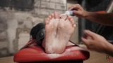 In the second scene, Leya lies on her stomach. This scene is shot by two cameras. The first camera takes her face, the second camera takes her feet. At the beginning of the scene, Leya gets a ballgag, which will be removed later to free her mouth for new squeals and curses. In this scene, unlike the first, I grease her feet with oil and also tickle her with the same set of devices. Leya gets tired and sweaty, but the tickling continues for her.
